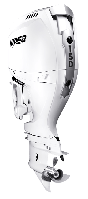 HDEF150 EFI features quiet operation due to being a powerful 4-cylinder 4-stroke motor combined with the Reverse Exhaust Relief system, redirecting exhaust gas through propeller in the water.