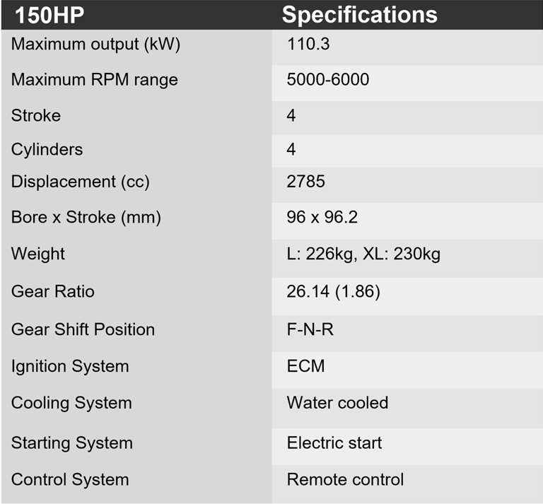 The HDEF150 EFI are using a higher gear ratio to provide these engines with extraordinary forward and reverse thrust for improved maneuverability and performance.