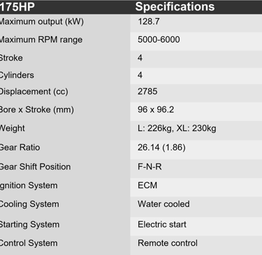 In addition to the usual great features and finishes found on the 4-stroke models, the 4-cylinder 175HP EFI has the following benefits.