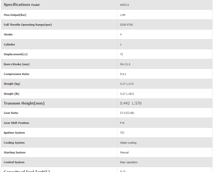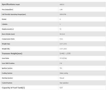 The Hidea HDF2.5 is the smallest engine in the Hidea four stroke range. The HDF2.5 utilizes a single cylinder, water cooled power unit that is extremely compact in its design.