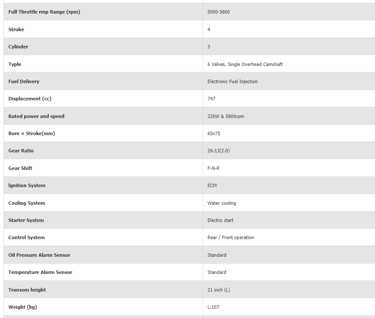 The EFI system automatically adjusts the air-fuel mix according to speed and load, this maximizes power throughout the RPM range will save up to 20% less fuel than other comparably sized outboards in the cruise speed.